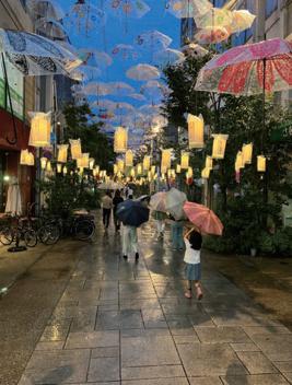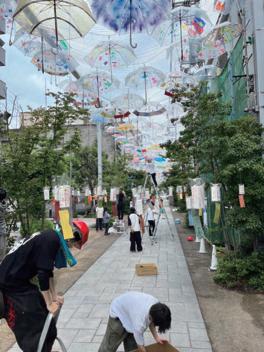 今年の7 月に研究室で福山市の七夕まつりに参加し、祭り全体の企画、設計を行っ た。廃棄傘を用いたアンブレラスカイプロジェクトを発足し、前年までと異なる七 夕まつりを成功することができた。