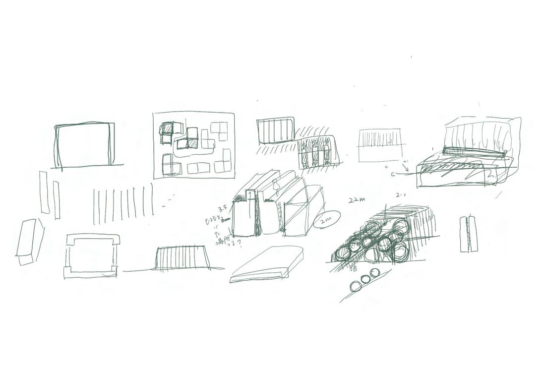 空間の構想は常にあり、道を本と繋げていくための内観をスケッチを通して模索していく。 書庫を持たない図書館とするための本棚が動かせる図書館。移動図書館から発想を得てトラックと図書館の設計を進める。