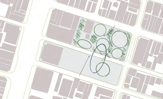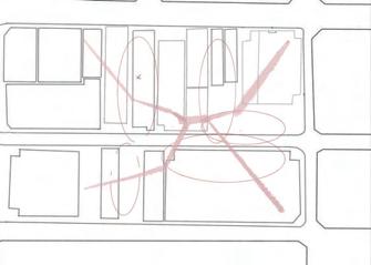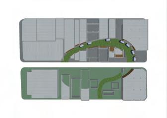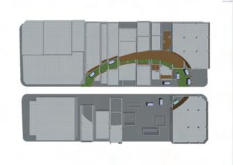 街の日常に溶け込む 図書 館は街と密 に関 わ りながら発展して いく。 敷地内の店舗の前に はその店舗に関連した本棚を積載するトラッ ク図書館が配置され、待ち時間や隙間時間に 利用する。そのため、 共通の目的や興味が ある人を集めることができ、コミュニティ空 間の形成を担う。