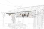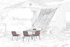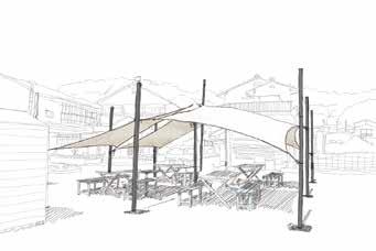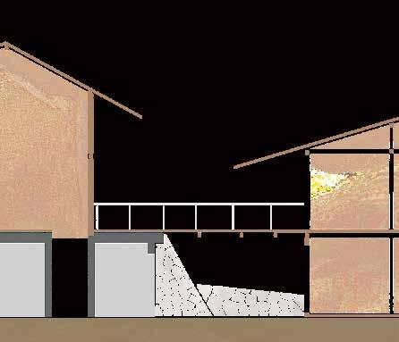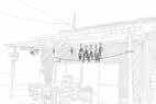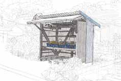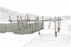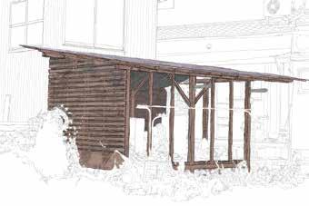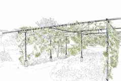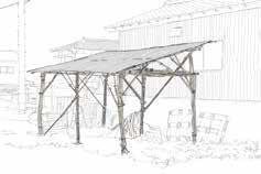 垂木を延長させたパーゴラは食物の栽培や乾燥保存に使われ、様々な空間が生まれる。