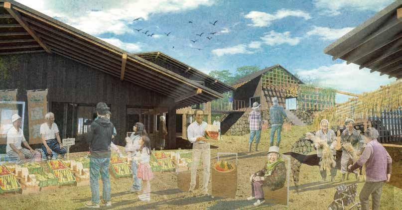 由良町を舞台として、海側から山側へ と農業と漁業が相互に交り合い、小学校 跡地にて生鮮食品を島民同士が交換し、 観光客は生業を体験するこのように生ま れる連関は興居島の生業によって人々の 交流により生まれるものであり、島全体 を巻き込んでいく。