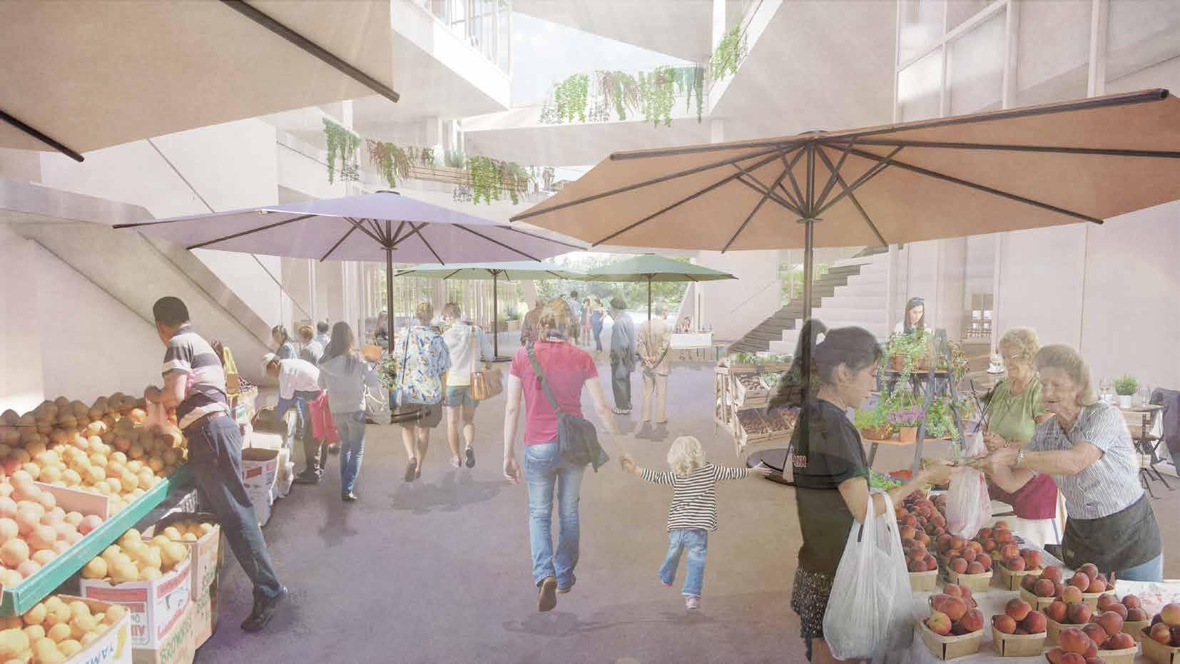 販売スペースでは周辺地域や畑から集まった生鮮食品が高齢者に提供される。 かつて食糧庫として使われていた水屋部分は機能を継承し、地域住民に開く食糧蔵となる。