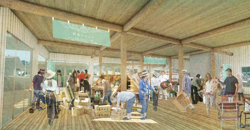 加えて、農家単位で工場が持てない現状で、機能を集約し、みんなで共同で 使う加工場やキッチンは農業のポテンシャルを高め、生鮮食品を提供する。