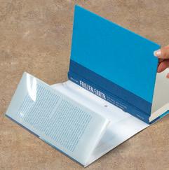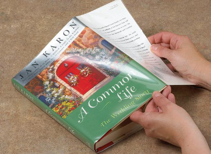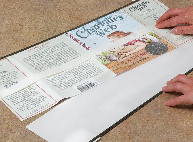 • Apply covered jacket to the book. • Anchor covered jacket to the book with optional self-stick tabs as shown or with attaching strips