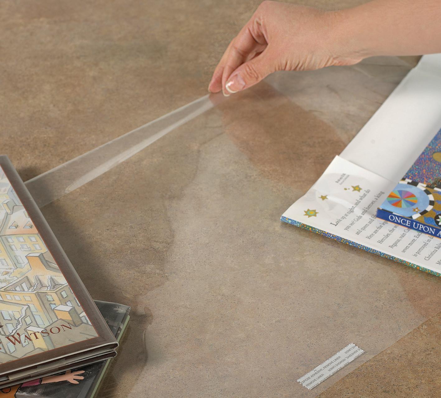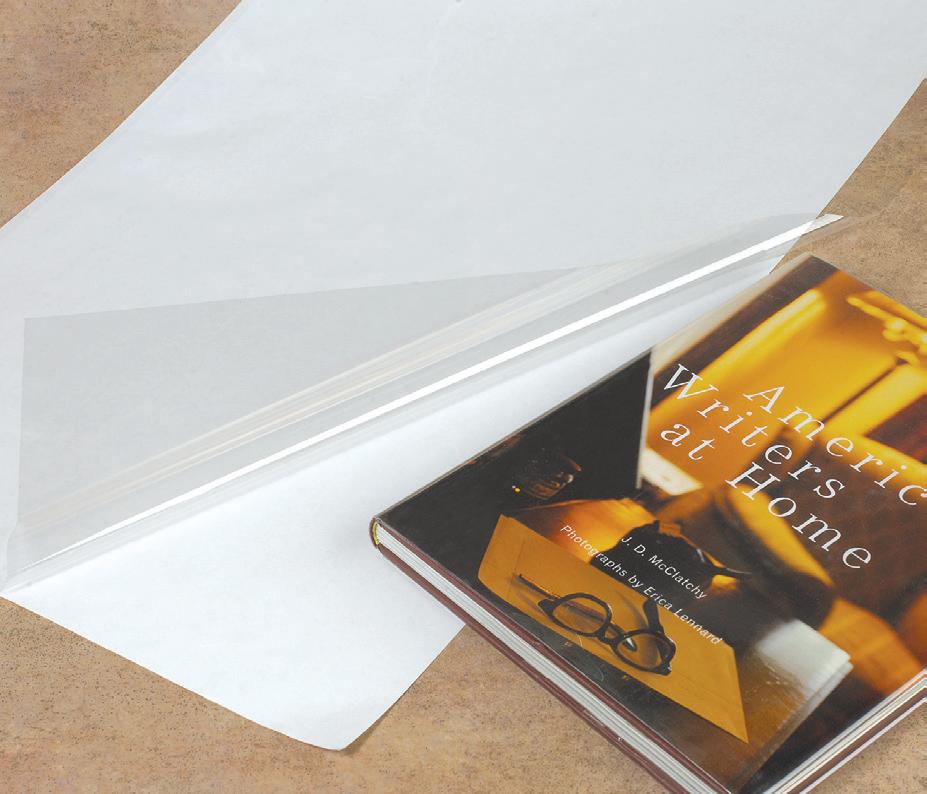 Soft, flexible, quiet material that will stretch but will not tear; recommended for non-circulating or personal collections. Available in non-reflective (to hide imperfections) and clear (to show off new dust jackets). Available in 2.5-mil thickness. Best for home collections or non-circulated books.