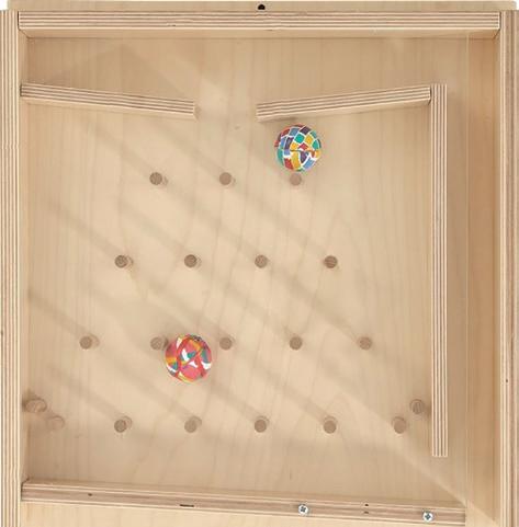 • Constructed of birch plywood with acrylic glass pane and three steel balls