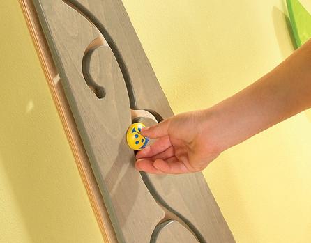 Encourages children to move the stones from one chamber to another by turning the panel. Laws of gravity and force can be seen with the help of a slight acoustic effect.