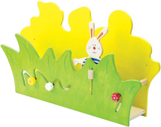 • Birch wood guide rails let you slide interchangeable Activity Panels to keep playtime exciting