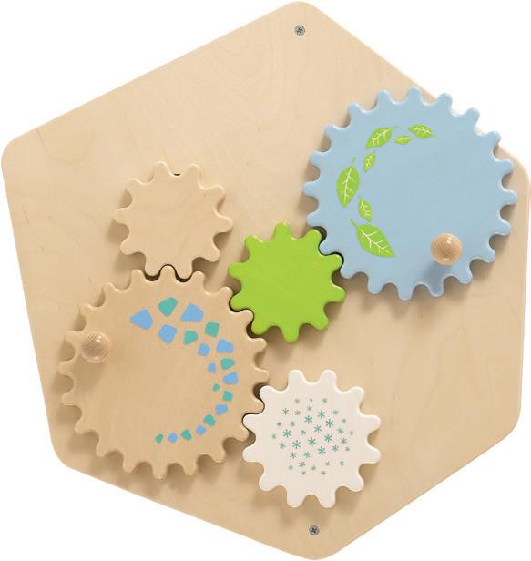 MOTOR SKILLS “E”: Suspended sliding balls, colorful gears to turn, and magic magnetic dust tube teach children science, color, and motion.