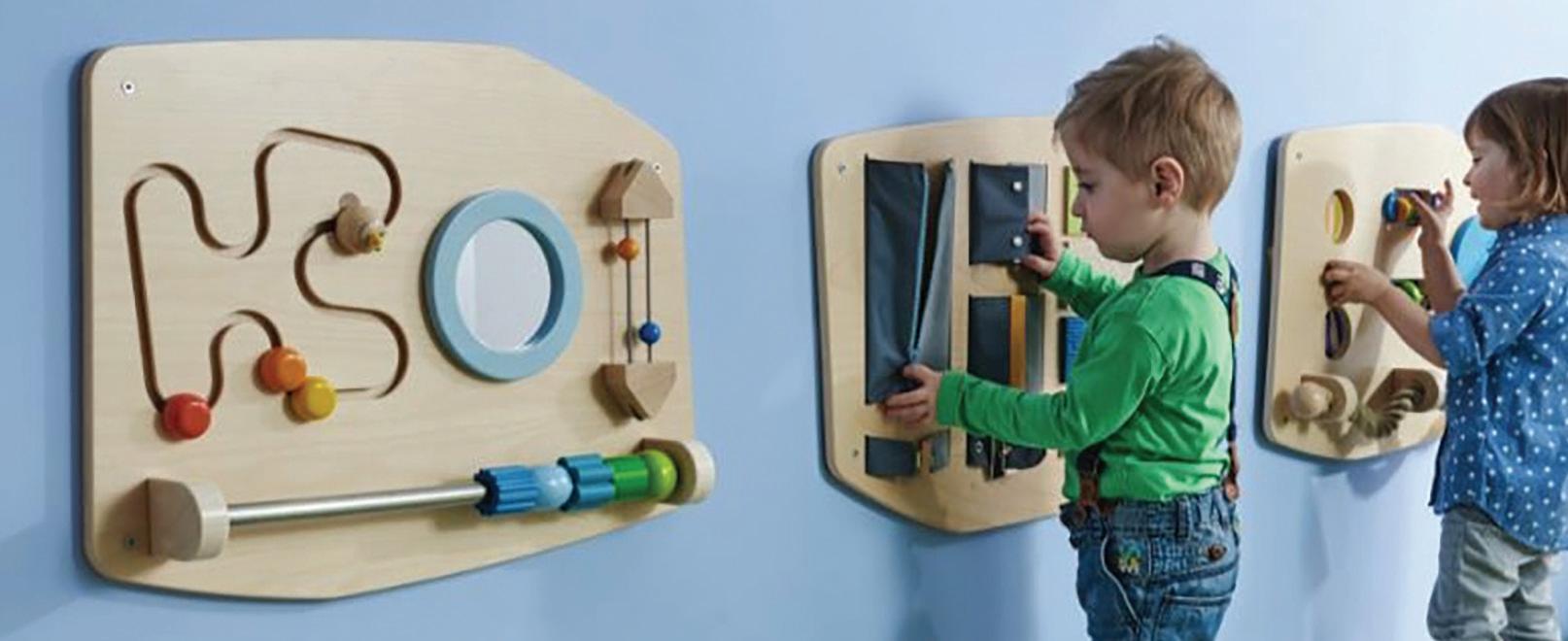 • Birch veneer panels for use with guide rails (sold separately on facing page) to interchange panels on your Sensory Walls