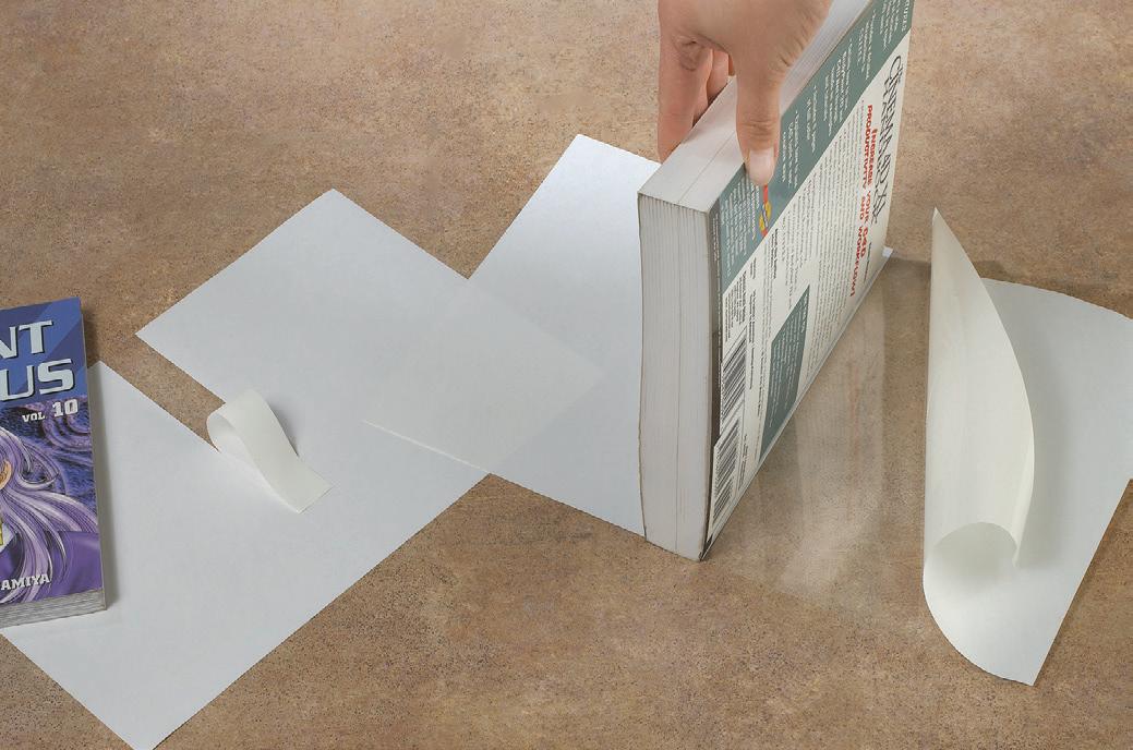 • Ready-to-use sheets feature release paper backing die-cut at spine for easy application