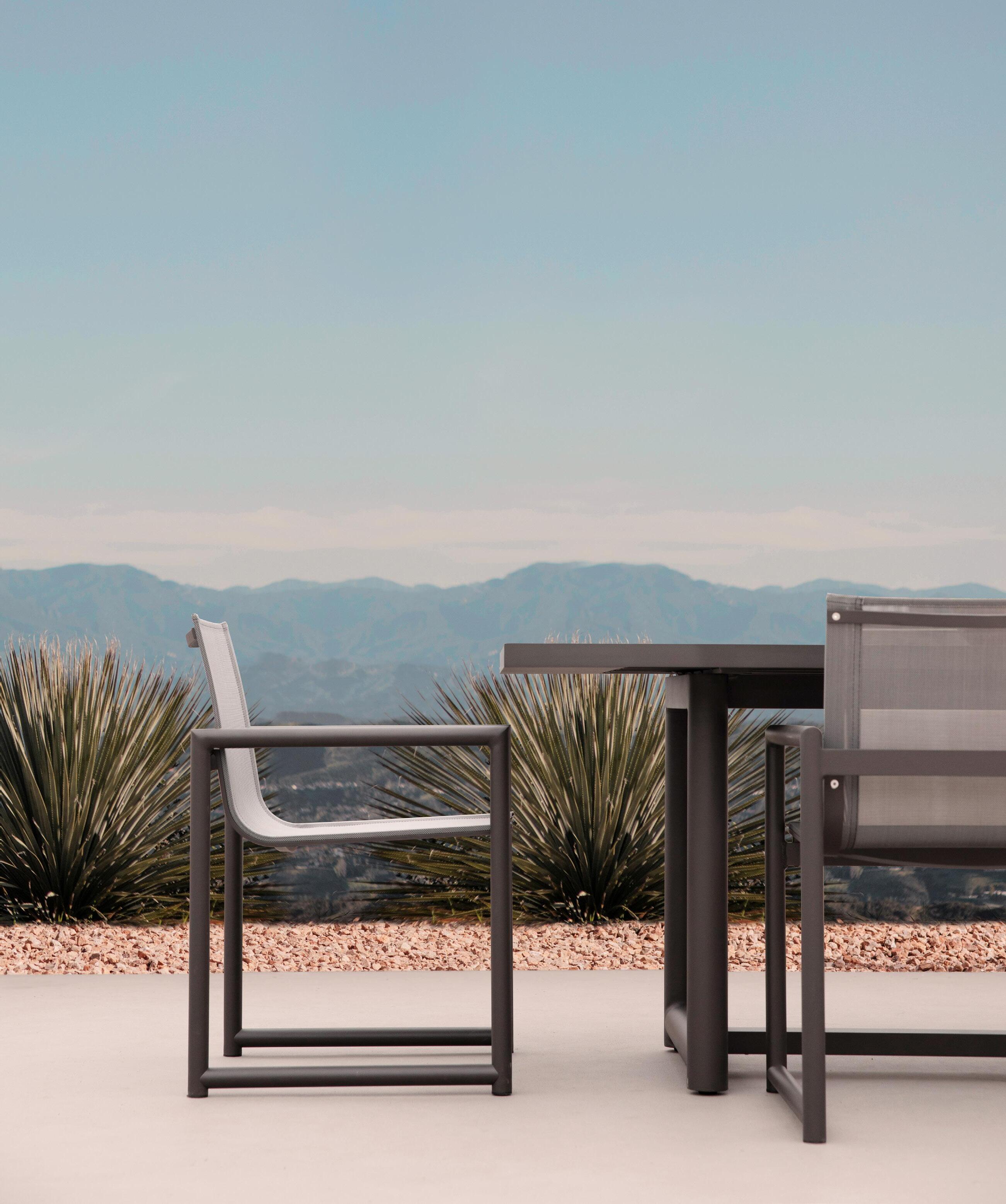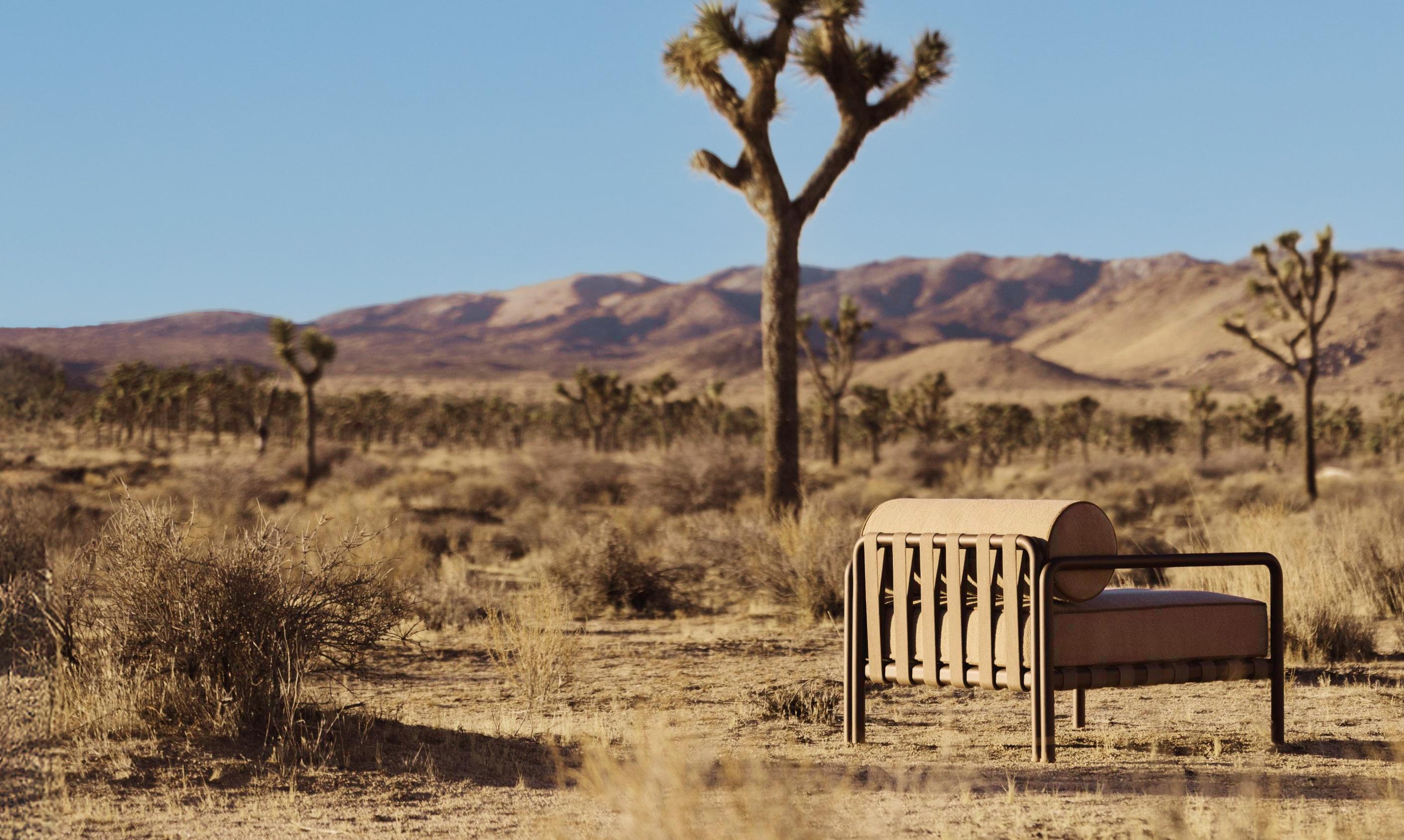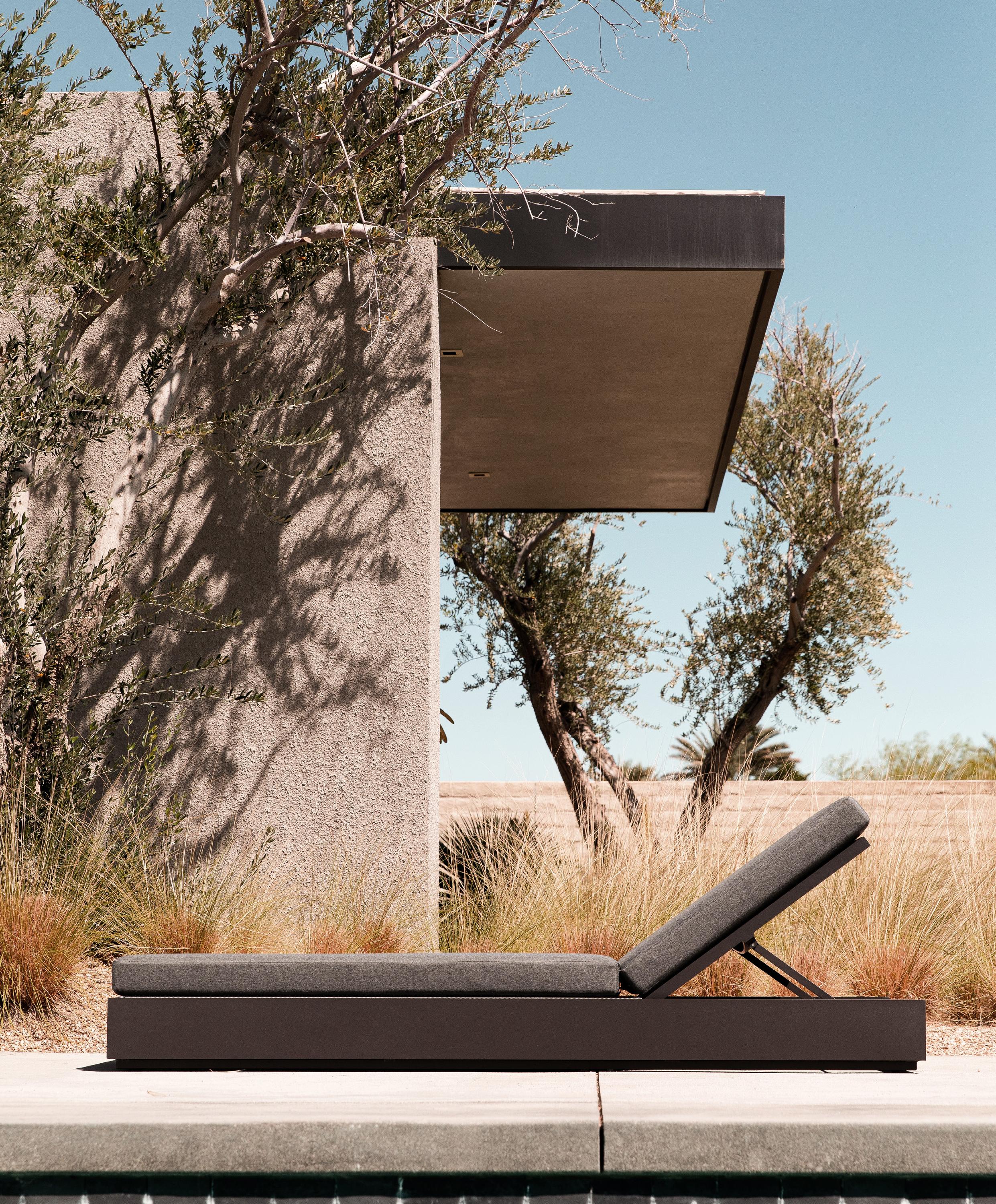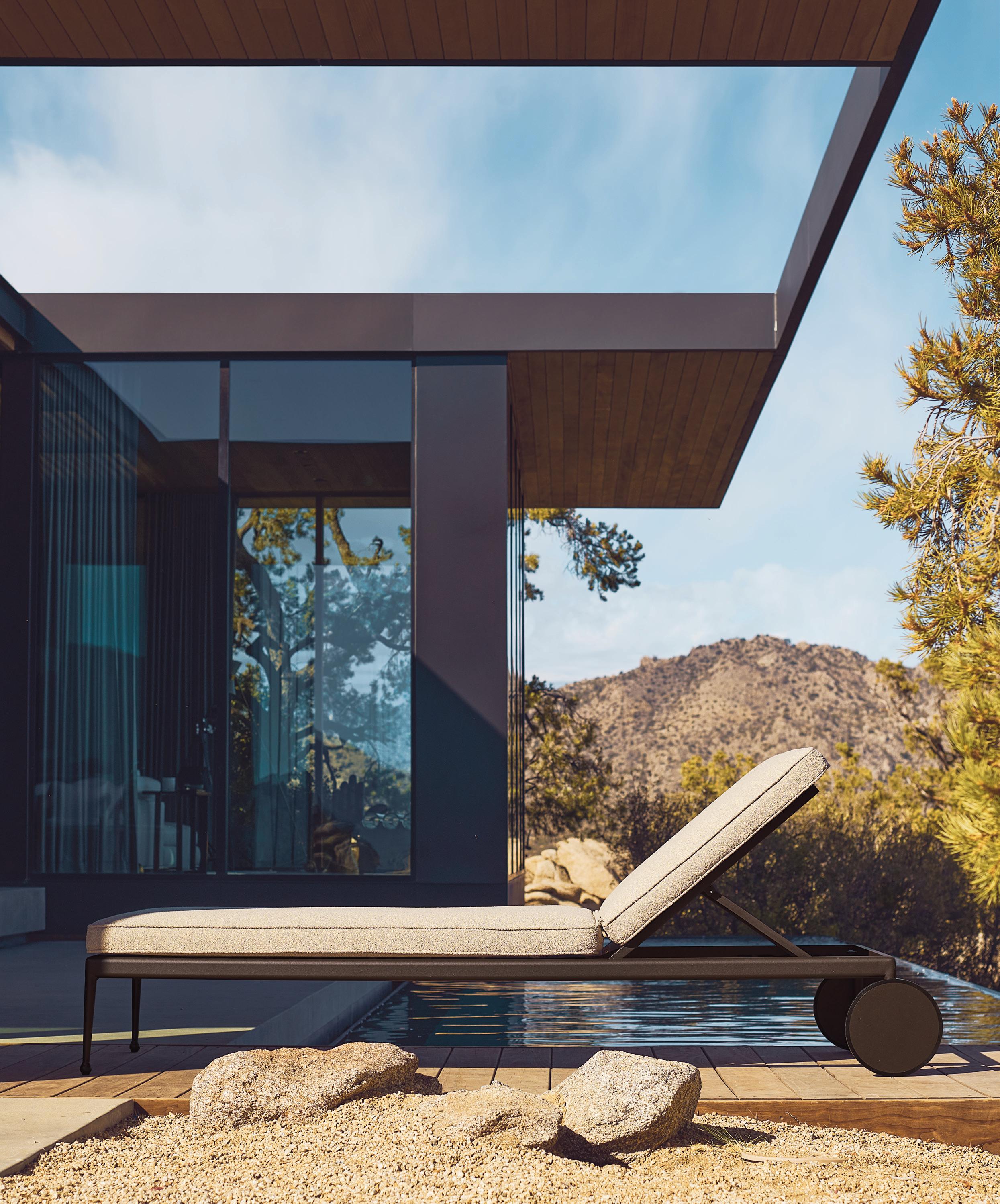 Retro-modern luxury inspired by the iconic style of 1950s Palm Springs. Tubular bronze aluminum, thick strapping and refined piping e ortlessly update mid-century charm with contemporary sophistication for any outdoor space.