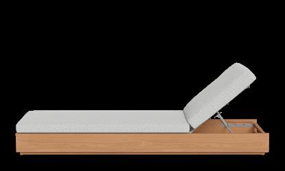 A. Newport Lounge Chair Shown in Teak Natural Frame and Copacabana Natural Fabric.
