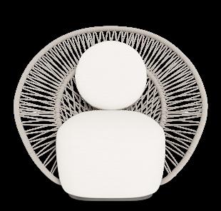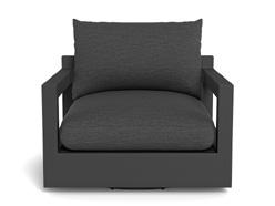 A. Palm Beach Teak Swivel Lounge Chair Shown in Teak Natural Frame, Stone Rope and Panama Coco Fabric.