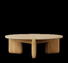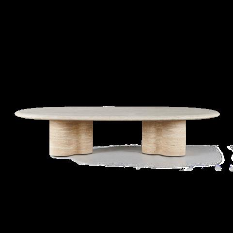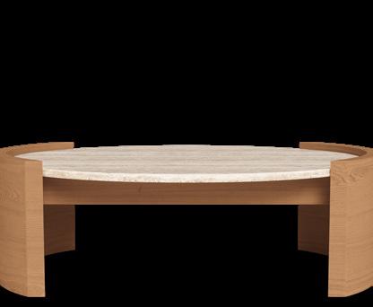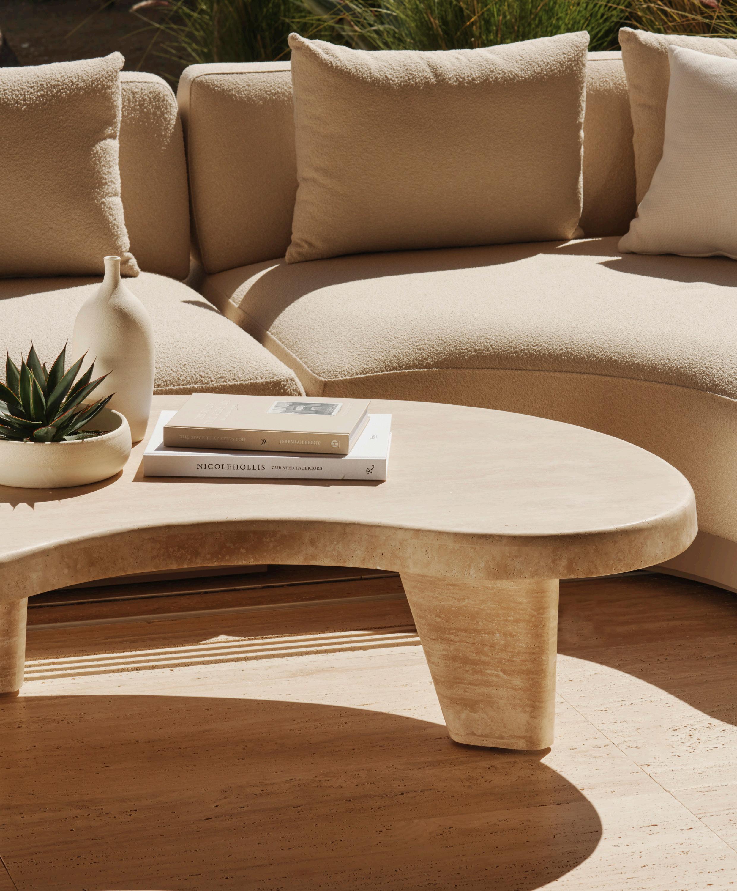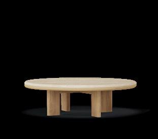 B. Chloe Co ee Table Shown in Teak Natural Base with Travertine Cream Top.