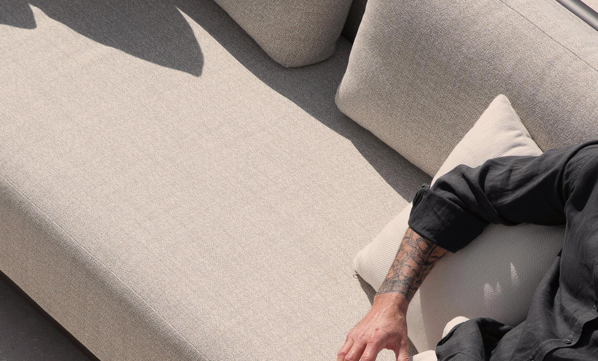 Milled in Italy, our premium fabric range, Siesta, is outdoor luxury at its finest. While it feels and looks like an indoor linen fabric, this double-thickness basket–weave fabric is crafted from 100% Polypropylene, making it sun-, stain-, and water-resistant. Easy to clean and quick to dry, this new addition to our outdoor fabric o erings is refined, classic, and contemporary. Siesta is sourced from the One by Mario Sirtori line, established by a company of Italian expertise in 1955, specializing in luxury, contract quality fabrics.