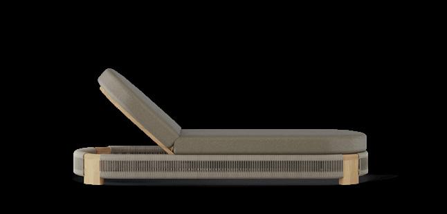 A. Palm Beach Teak Sun Lounge Shown in Teak Natural Frame, Stone Rope and Panama Coco Fabric.