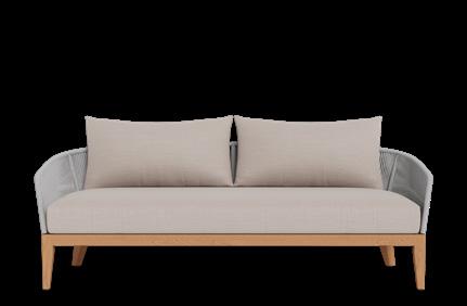 B. Palm Beach Teak 3 Seat Sofa Shown in Teak Natural Frame, Stone Rope and Panama Coco Fabric.