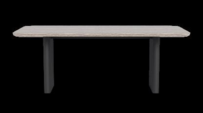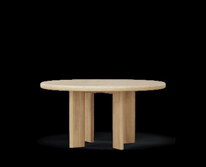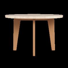 B. Chloe Rectangle Dining Table Shown in Teak Natural Base with Travertine Cream Top.