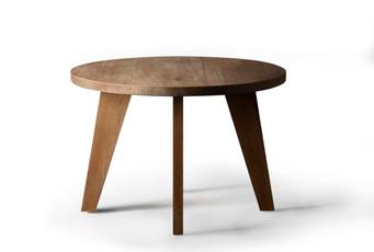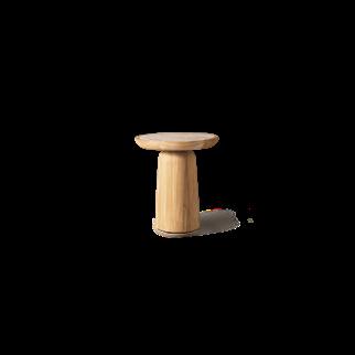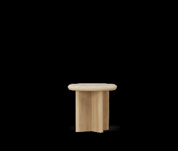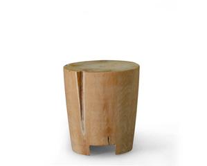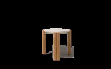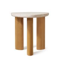 B. Chloe Side Table Shown in Teak Natural Base with Travertine Cream Top.