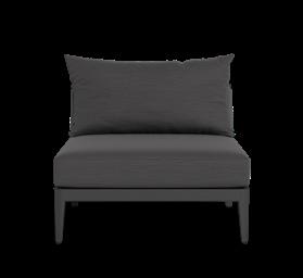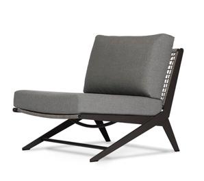 B. Vaucluse Lounge Chair Shown in Aluminum Asteroid Frame and Cast Slate Fabric.