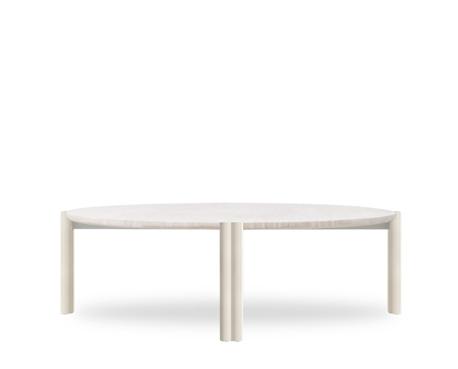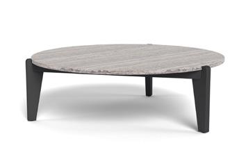 C. Porto Travertine Pill Co ee Table Shown in Travertine Grey.