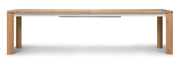 B. Palm Beach Teak Dining Table Shown in Teak Natural Base with Travertine Cream Top.