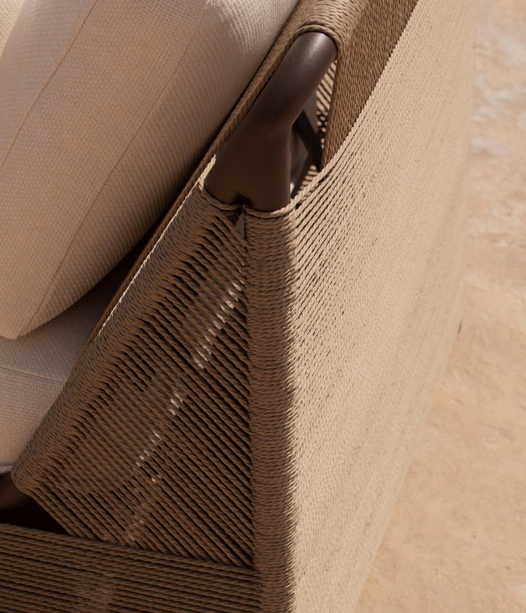 Shown in Aluminum Bronze Frame, Umber Rope and Panama Coco Fabric.