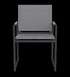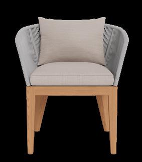A. Palm Beach Teak Dining Chair Shown in Teak Natural Frame, Stone Rope and Panama Coco Fabric.