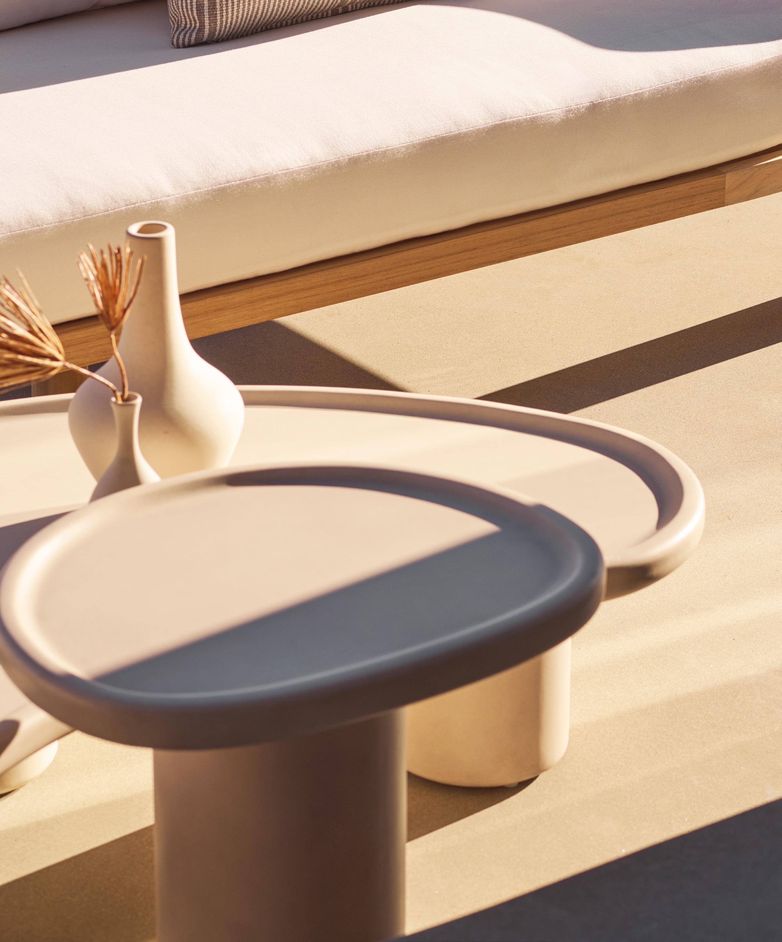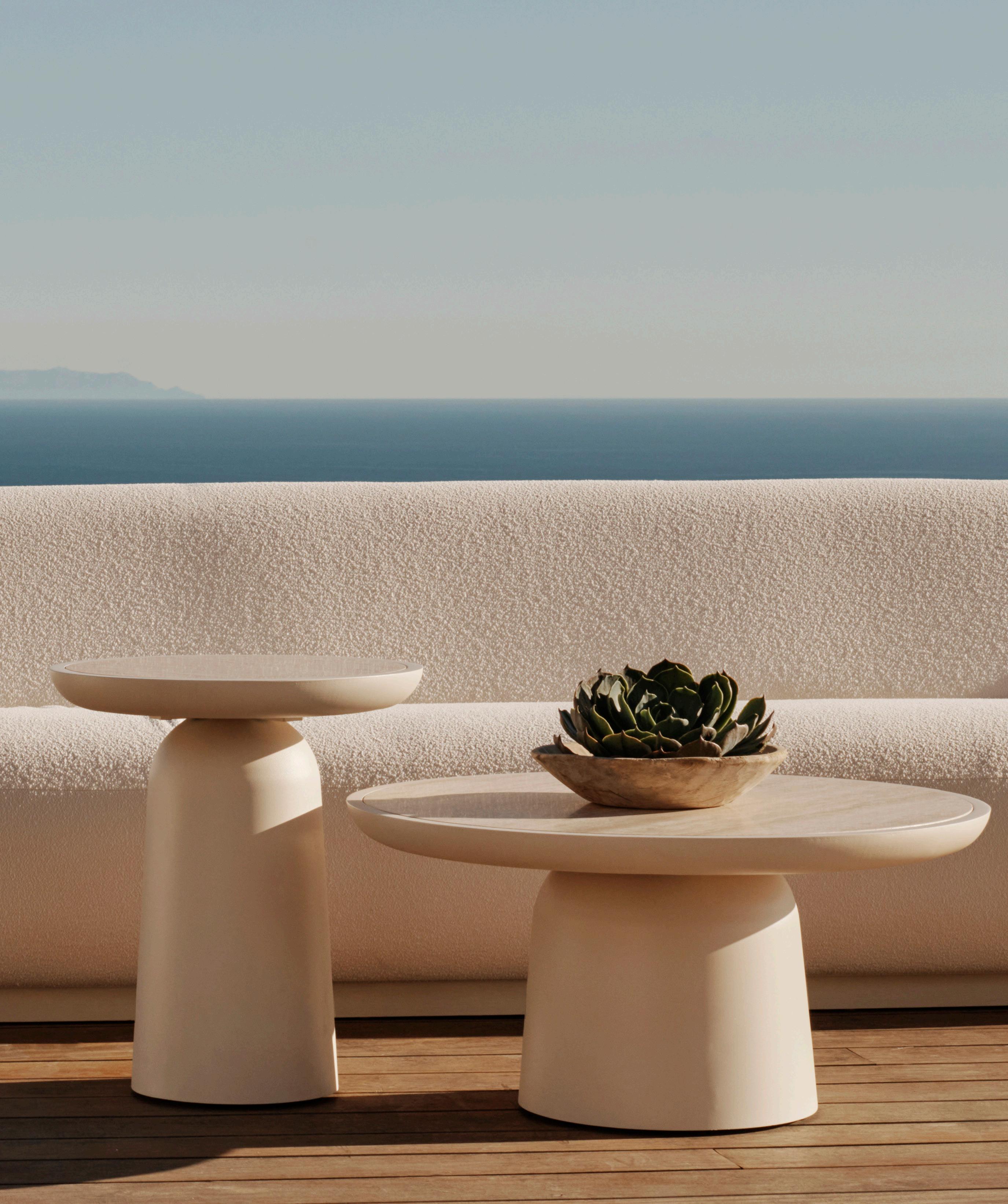 Drawing inspiration from the stunning Scala dei Turchi cli s in Sicily, nature’s organic forms are reimagined through a modern, coastal lens. Crafted from an innovative concrete composite, these soft, sculptural nesting tables boast a chalky limestone finish that recalls the ancient white limestone cli s that inspired their name.