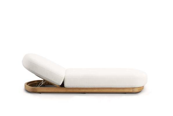 A. Chloe Lounge Chair Shown in Teak Natural Frame and Panama Blanco Fabric.