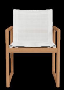 A. Chloe Dining Chair Shown in Teak Natural Frame and Panama Blanco Fabric.