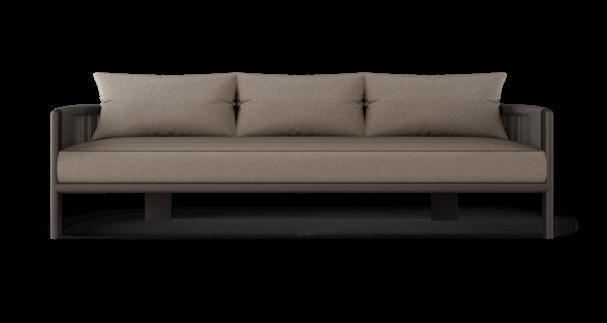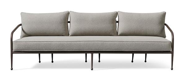 B. Andre 3 Seat Sofa Shown in Aluminum Bronze Frame and Riviera Stone Fabric.