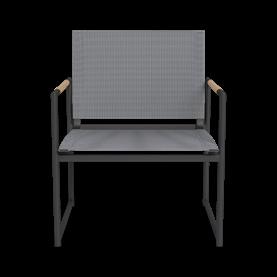 Vaucluse Lounge Chair Shown in Aluminum Asteroid Frame and Cast Slate Fabric.