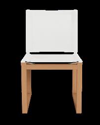 A. Breeze XL Teak Dining Chairs Shown in Natural Teak Frame with White Batyline Seat.