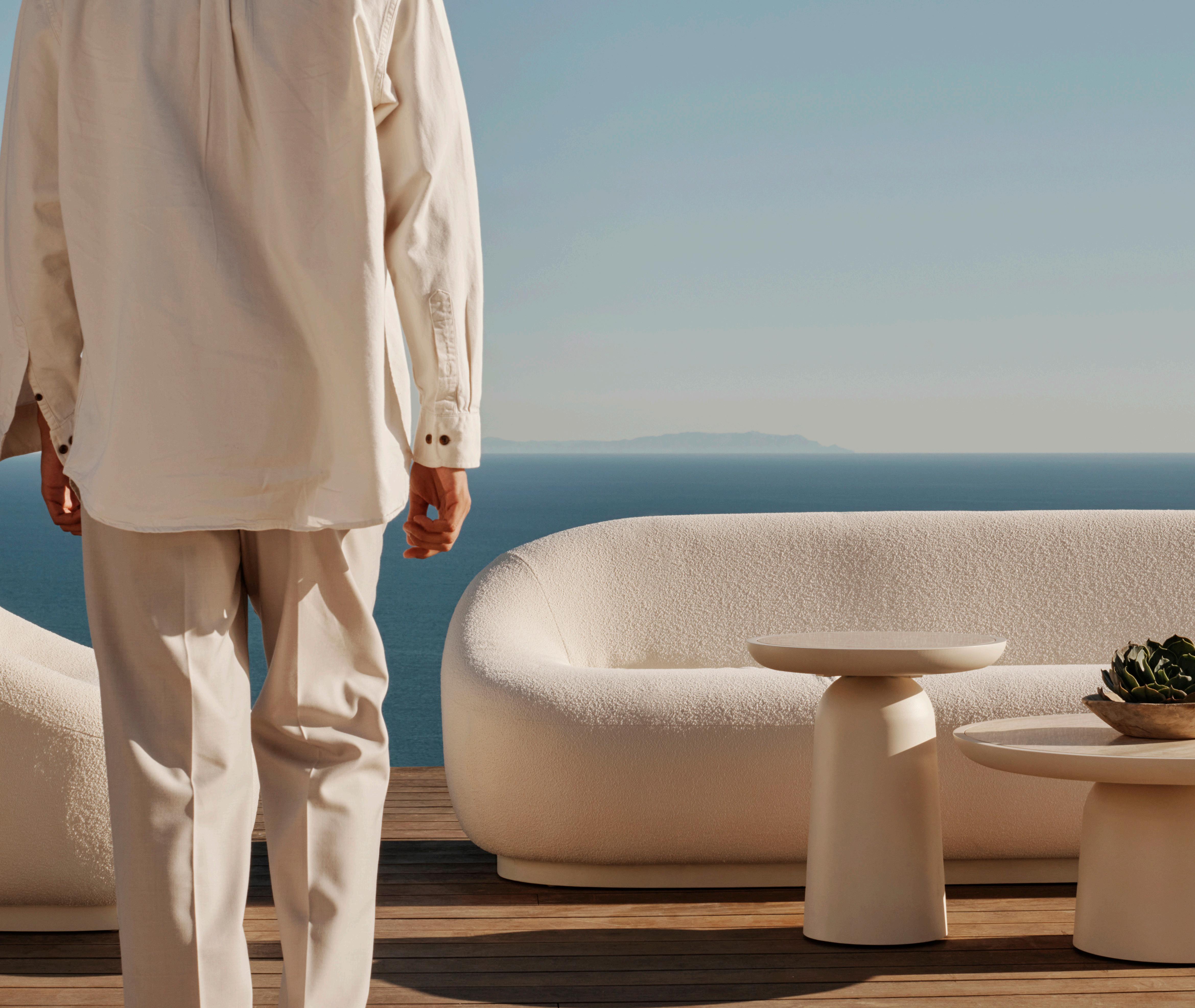 Organically-inspired signature curves and luxe outdoor upholstery showcase the traditions of fine Italian tailoring refined for a natural setting.