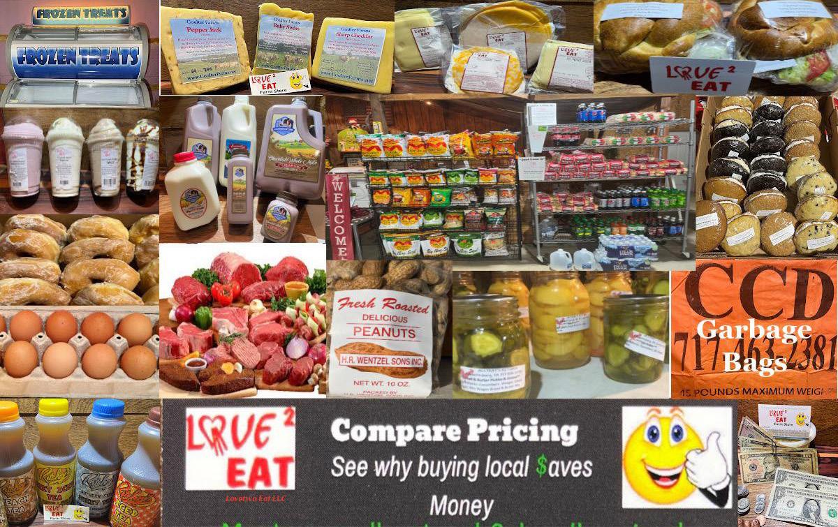 FARM STORE A Service of Lovetwo Eat, LLC Your “Local” Grocery Store USDA Inspected Meats, Fresh Milk, Butter, Chips, Soda, Lunch Meats, Homemade Baked Goods & Soaps & Lotions plus more.... Now with at least 15 Local Farmer’s Products Available www.ilovetwoeat.com Email: ilovetwoeat@gmail.com Want to Carry Our Products? Give us a call 717-734-3335 or order on line... 417 Smokey Hollow Rd. • East Waterford, PA 17021 Open Mon. - Fri. 8am-7pm / Sat. 8am-5pm / Sun. 1pm-5pm Compare Pricing & See Why Buying Local $aves Money! $$$ The $5.00 Dollar Just Love it Meal!!