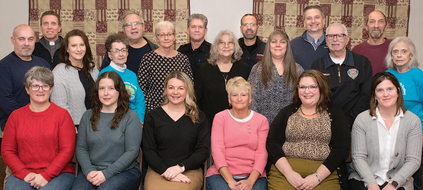 Recording Secretary), Kathleen Dissinger (ECA 5Year Trustee), Peggy Croft (ECA President), Gale Martin (ECA Vice President), Kristi Myers (ECA Member), Dennis Townsley (Ephrata Fire Company), Kathy Barr (ECA 1Year Trustee); (back row) Pastor Mark Luscombe (Holy Trinity Lutheran Church), Randy Gockley (Lincoln Fire Company), Michael Lyons (Ephrata Ambulance), Roger Stauffer (Martindale Fire Company), Nate Hoffer (Good Samaritan Services) and Richard “Dick” Mayer (ECA Financial Secretary). Missing from the photo was Ralph Dissinger (ECA 3Year Trustee) and representatives from Akron Fire Company and Highland Elementary School PTO.