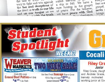 • Weekly Reader Interest Features including a Biblical Message, Student Spotlight, and our Pennsylvania Dutch Column