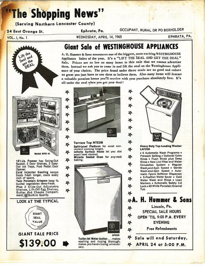 Mr. Hocking and his wife Janie introduced The Shopping News to Lancaster Countians in 1965. The paper began as a 1/2 tab, 24-page booklet mailed bi-weekly to only 10,000 homes. The Shopping News is now a full tab newspaper, averaging 36 pages per week and reaching over 34,000 homes in Lancaster County, as well as parts of Lebanon and Berks Counties.