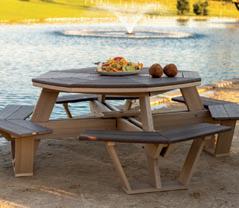 conditions. In hot and dry climates, you want heatresistant materials like synthetic wicker or aluminum. If it’s rainy and humid, teak, synthetic resin, powder-coated steel, and eucalyptus are good options. If the furniture will remain out in cold or snowy conditions, teak and treated metals offer superior endurance.