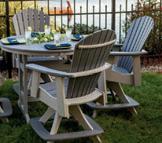 a durable teak table and pair it with synthetic wicker chairs, which are a midrange seating option.