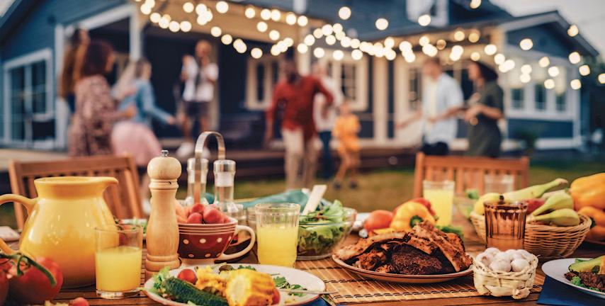 for outdoor events. Arrange seating around the fire pit to keep conversation flowing. An outdoor bar also is a great place for people to gather, whether it’s stocked with alcoholic or non-alcoholic drinks. Mark off an area where people can mingle and