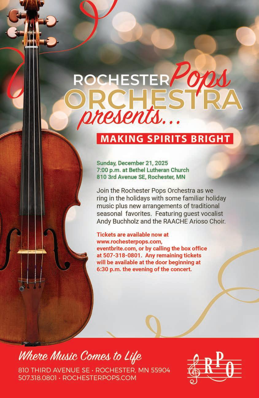Mass: Sat 4:30 pm Sun 8:15 and 10:00 am 5455 50th Ave NW, Rochester 280-0638 • holyspiritrochester.org