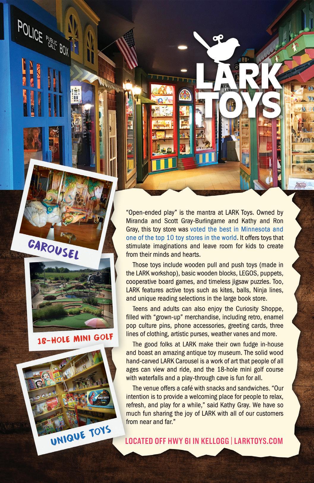 While fly and bait fisherman explore creeks and river pools, riverboat enthusiasts can watch paddleboats come up from New Orleans to dock at Red Wing. Train and architecture buffs will enjoy a visit to the historic train depot. During autumn and winter, enjoy apple orchards, a pumpkin patch and corn mazes. Holiday visitors can enjoy hot cocoa and hay rides. Experience River City Days festival when summer is in full bloom!