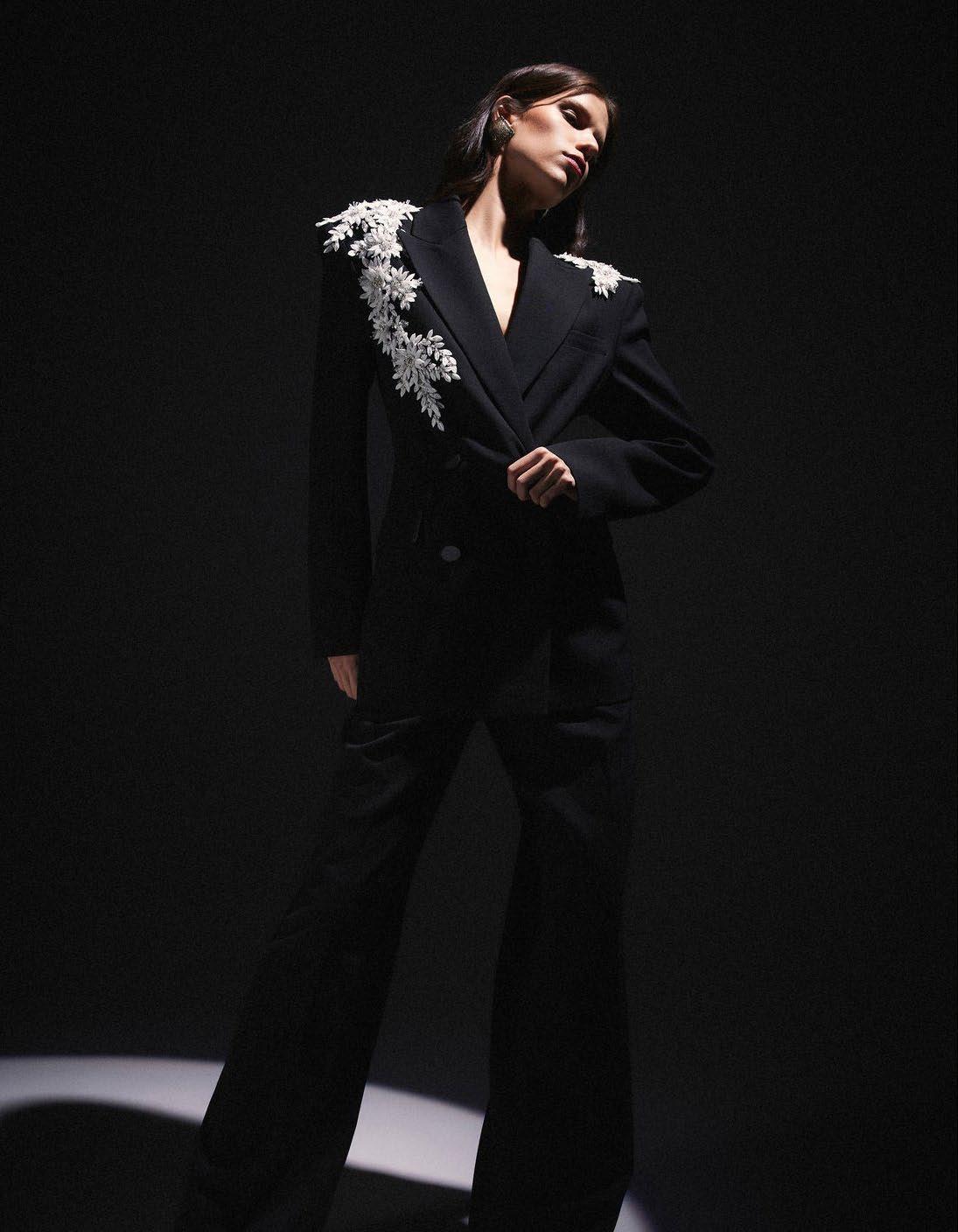 Danna Double-Breasted Blazer With Floral Applique