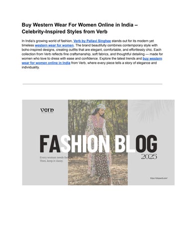 Explore the latest collection of Western wear for women at ShopVerb by Pallavi Singhee. Discover boho chic dresses, resort wear, and vacation outfits crafted for comfort and style. From embroidered kaftans to flowy maxi dresses, every piece blends elegance with effortless charm. Perfect for brunches, getaways, and evening parties β ShopVerb brings you modern Western fashion with a timeless boho twist.
