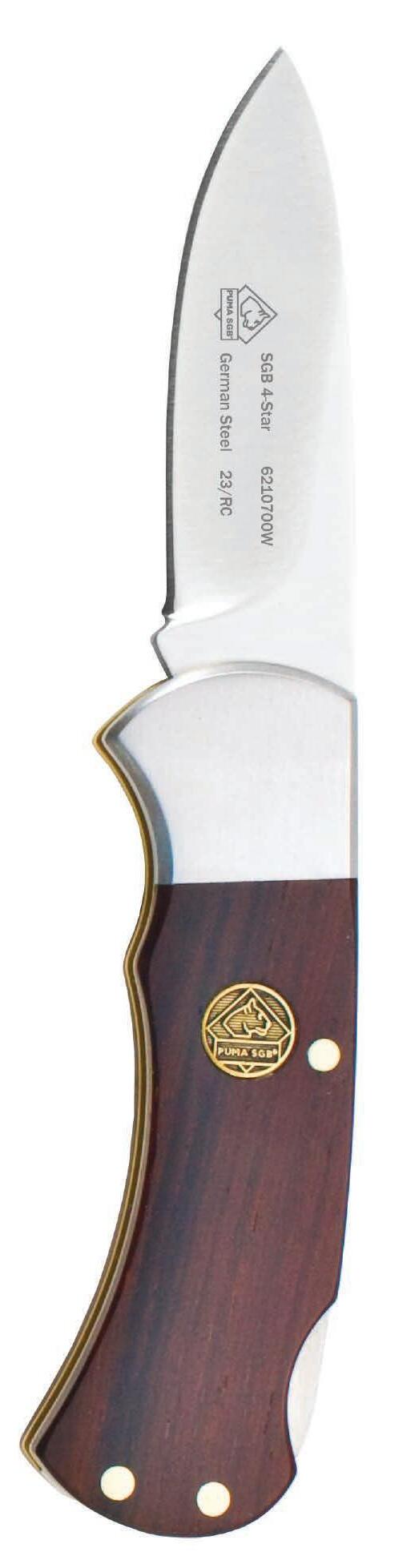 The SGB 4-Star Wood has a 2.8-inch German cutlery steel blade with a traditional lockback and a spine release. It has an overall length of 5 inches and features a Rosewood handle. It is also available in stag and stainless steel. SRP: $72. (pumaknifecompanyusa.com)