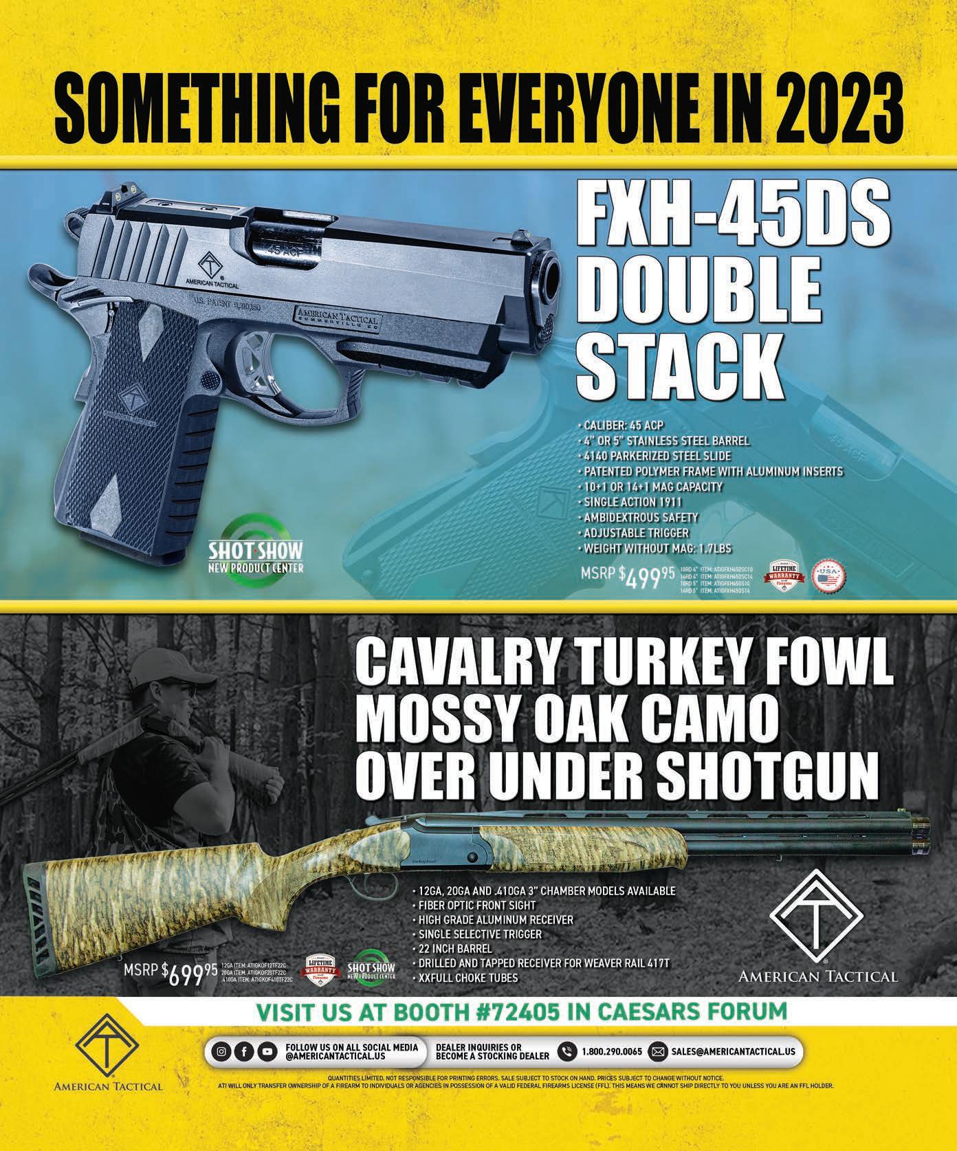 ADVERTISING: Advertising inquiries should be emailed to shotbusiness@colepublishing.com. No responsibility will be assumed for unsolicited materials. SHOT BUSINESS is a registered trademark of NSSF. Contents copyright ©2023 by NSSF. All rights reserved. Reproduction in whole or part is prohibited unless expressly authorized by publisher.