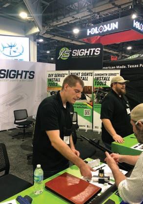 during daylight conditions. Many standard LE and military pistols use these sights to aid with sight alignment. XS Sights (Booth #13624) is a good source. So are Trijicon (Booth #10735), Night Vision (Booth #40926), TruGlo (12669), and Ameriglo (Booth #10735). Fiber optic and tritium sights are a more affordable option than lasers and most models do not change the profile of the handgun.